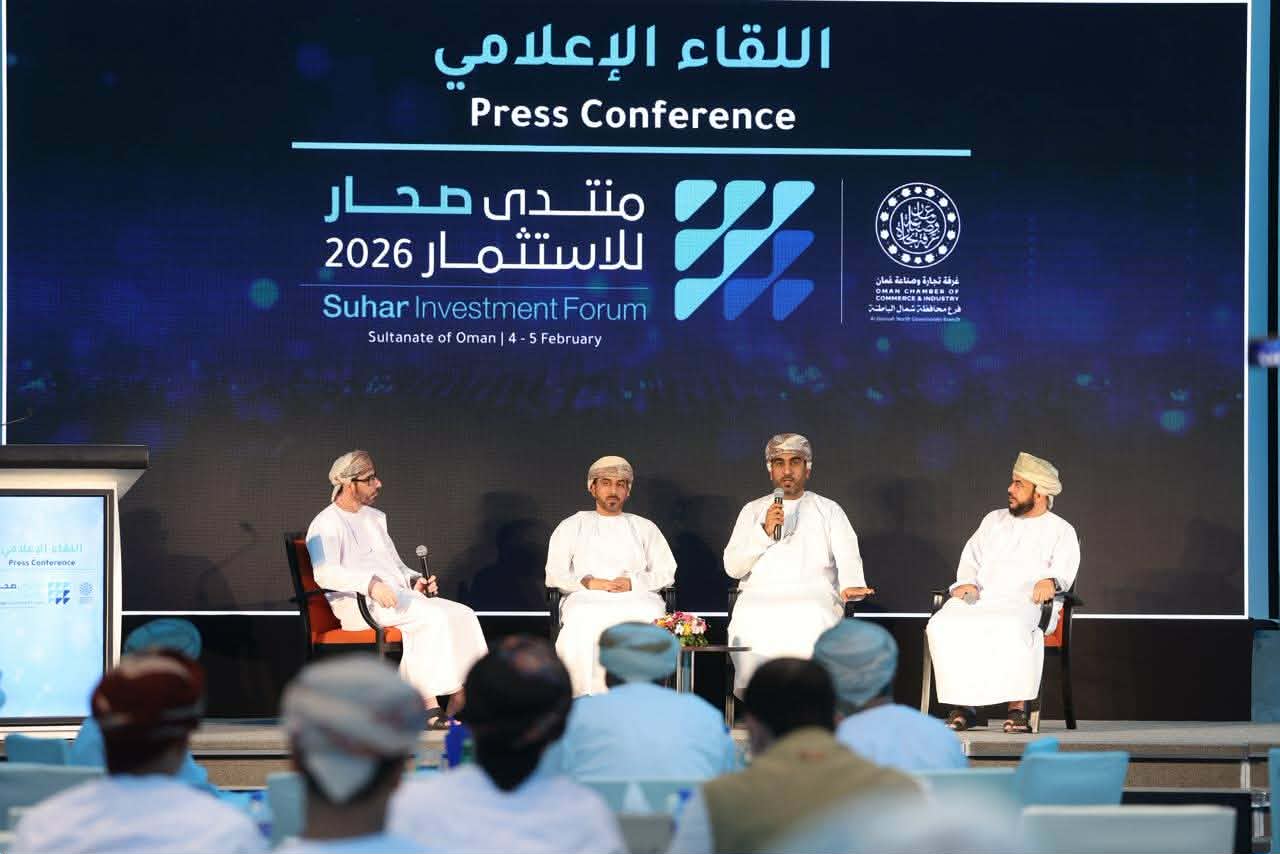 نظّمت اللجنة المنظمة لمنتدى صحار للاستثمار 2026 مؤتمرًا صحفيًا لاستعراض تفاصيل الدورة الجديدة من المنتدى،المقرر انعقاده يومي 4 و5 فبراير المقبل وذلك بمشاركة المهندس سعيد بن علي العبري، رئيس مجلس إدارة فرع غرفة تجارة وصناعة عُمان بمحافظة شمال الباطنة، والمهندس رائد بن محمد الربيعي الرئيس التنفيذي للمنطقة الحرة بصحار ونائب الرئيس التنفيذي لميناء صحار، والمهندس عبد الله بن أحمد المياسي مدير عام مدينة صحار الصناعية، إلى جانب حضور عدد من المسؤولين في الجهات الحكومية والخاصة وممثلي وسائل الإعلام المحلية.